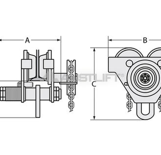 The Austlift geared trolley is hand-operated by pulling the hand-chain, running on the bottom flange of monorail. With a main shaft with spacers you can adjust the width of beam. They are widely used in factories, mines, wharves, docks, warehouses and engineering workshops for installation of equipment and conveyance of goods. They are especially suitable for maintenance and repairing of equipment in places where no power supply is available.